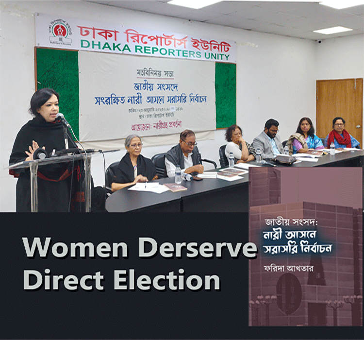 The meeting was held on January 23, 2023 at Dhaka Reporters Unity, Shegunbagicha for exchanging views on the reserved seats for women in the parliament. Among other participants, ex-member of Parliament Barrister Rumin Farhana, renowned political analyst Professor Dilara Chowd