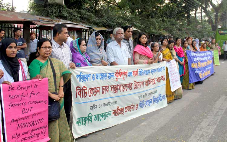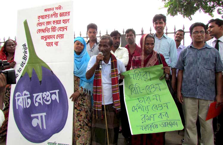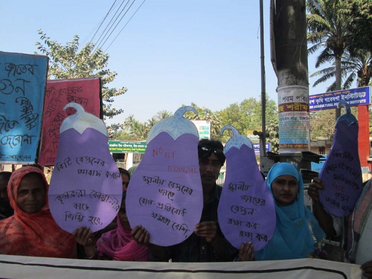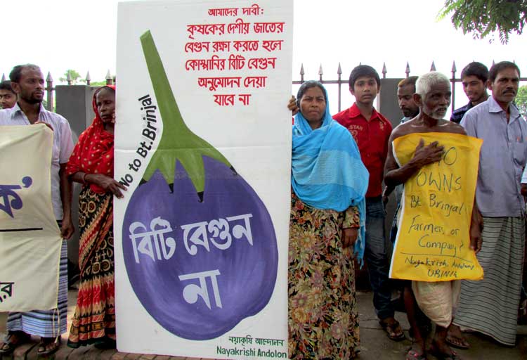 Bangladesh has a wide diversity of rice and vegetables, but two genetically modified food crops (Bt brinjal and golden rice) are being promoted unnecessarily. This is unfortunate and shameful. Farmers and environmental groups have been protesting against such actions. These two GM crops have raised controversy in Bangladesh, India, the Philippines, and Indonesia and among global anti-GMO activists.