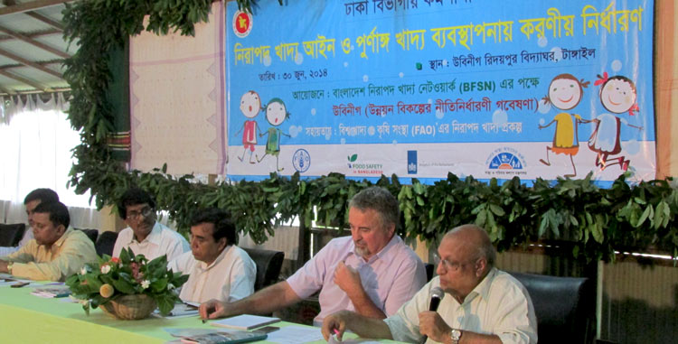 The Bangladesh Food Safety Network (BFSN) was formed following a two-day workshop entitled Building a Food Safety Network in Bangladesh in November 2010. The founding member organizations of BFSN include CAB (Consumer Association of Bangladesh), UBINIG (Policy Research for Development Alternative), Shisuk, B Safe Foundation and Hunger Free World. .