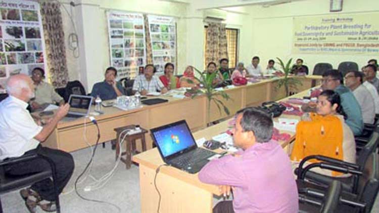 A training workshop on Participatory Plant Breeding (PPB) for food Sovereignty and sustainable Agriculture was jointly organized by UBINIG (Policy research for Development Alternative) and PBGSB (Plant Breeding and Genetics society of Bangladesh) at Bangladesh Jute research Institute (BJRI), Manik Mia Avenue, Dhaka during 22-24 July, 2014.