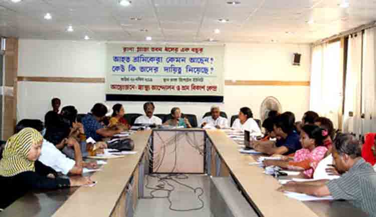 গত বছর ২৪ এপ্রিল, ২০১৩ সাভার রানা প্লাজা ভবন ধসে পড়ে ১১৩৮ জন শ্রমিক নিহত-হন-যার অধিকাংশই ছিলেন ভবনটিতে থাকা গার্মেন্টস কারখানার শ্রমিক। প্রায় ২৪০০ শ্রমিককে ভবনের ধ্বংসস্তুপ থেকে বের করা হয়-যাদের অনেকেই অঙ্গহানির শিকার হন। গত ২৪ এপ্রিল, ২০১৪ রানা প্লাজা ভবন ধসের এক বছর। এই উপলক্ষে ২২ এপ্রিল, ২০১৪ তারিখে ঢাকা রিপোর্টার্স ইউনিটিতে আহত শ্রমিকরা কেমন আছেন? কেউ কি তাদের দায়িত্ব নিয়েছেন ? শীর্ষক এক আলোচনা সভার আয়োজন করে শ্রমবিকাশ কেন্দ্র ও স্বাস্থ্য আন্দোলন।