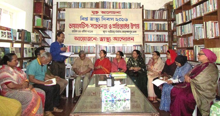 স্বাস্থ্য আন্দোলন এর আয়োজনে ৬ এপ্রিল, ২০১৬ বিকেল ৩ টায় নারীগ্রন্থ প্রবর্তনায় “ডায়াবেটিস সংক্রান্ত সচেতনতা ও প্রতিরোধের উপায়” নিয়ে এক মুক্ত আলোচনা সভার আয়োজন করা হয়। সভায় অংশগ্রহন করেছেন উন্নয়ন কর্মী, গার্মেন্ট শ্রমিক, কলেজের অধ্যাপক, ছাত্র, তামাক বিরোধী নারীজোট, শ্রমবিকাশ কেন্দ্র, নারীগ্রন্থ প্রবর্তনা, বীজবিস্তার ফাউনডেশনসহ আরো অনেকে। অংশগ্রহনকারী মোট ৩৩ জন।