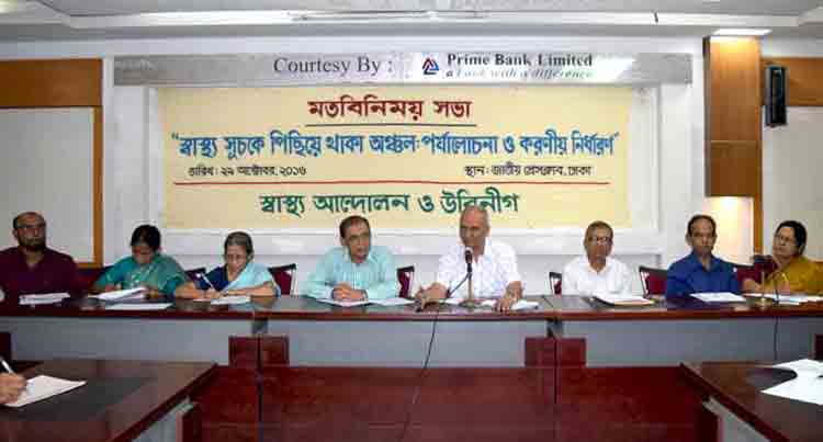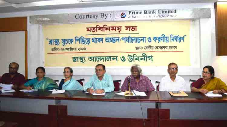২৯ অক্টোবর, ২০১৬ বিকেল ৩টায় ঢাকায় জাতীয় প্রেসক্লাবের ভি.আই.পি লাউঞ্জে স্বাস্থ্য আন্দোলন এবং উবিনীগ আয়োজিত “স্বাস্থ্য সূচকে পিছিয়ে থাকা অঞ্চল: পর্যালোচনা ও করণীয় নির্ধারণ” শীর্ষক এক মতবিনিময় সভা অনুষ্ঠিত হয়|