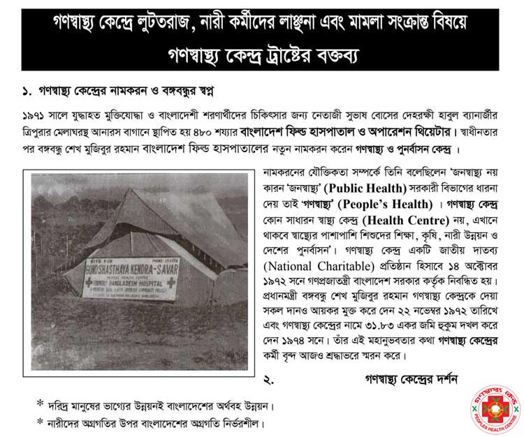 এই হামলার প্রতিবাদে গণস্বাস্থ্য কেন্দ্রের পক্ষ থেকে একটি সংবাদ সম্মেলন করে বিস্তারিতভাবে গণস্বাস্থ্য কেন্দ্রের ইতিহাস এবং অবদান এবং হামলার ঘটনা এবং এর নেপথ্যে (আরো পড়ুন )