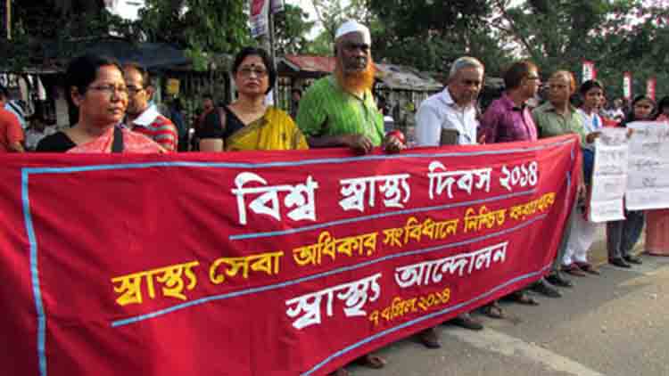প্রতিবছরের মতো এবারও বিশ্ব স্বাস্থ্য দিবস পালিত হয় ৭ এপ্রিল, ২০১৪। ১৯৪৮ সালের এই দিনে প্রতিষ্ঠিত হয় বিশ্ব স্বাস্থ্য সংস্থা। প্রতিষ্ঠা দিবসের গুরুত্ব বিবেচনায় প্রতি বছর এই দিনে পালিত হয় বিশ্ব স্বাস্থ্য দিবস। ১৯৯৫ সাল থেকে এ দিবসের প্রতিপাদ্য বিষয় ঠিক করে আসছে বিশ্ব স্বাস্থ্য সংস্থা। এবারের বিষয় ছিল ‘একটি ক্ষুদ্র সংশন অনেক বড় হুমকি, বিশ্ব স্বাস্থ্য দিবস উপলক্ষ্যে স্বাস্থ্য আন্দোলন নেটওয়ার্ক ৭ এপ্রিল, বিকেল ৪ টায় প্রেসক্লাবের সামনে “স্বাস্থ্য সেবা অধিকার সংবিধানে নিশ্চিত করতে হবে” শীর্ষক দাবী নিয়ে এক মানব বন্ধনের আয়োজন করে। মানববন্ধনে স্বাস্থ্য নিয়ে কাজ করছে এমন সংগঠনের প্রতিনিধিরা উপস্থিত ছিলেন।