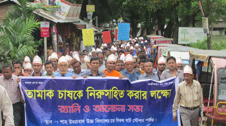 কক্সবাজারের চকরিয়ায় পরিবেশ বিধ্বংসী তামাক চাষের বিরুদ্ধে সামাজিক আন্দোলন জোরদার করতে শিক্ষার্থী ও বিভিন্ন শ্রেণি পেশার লোকজনের অংশ গ্রহনে শোভাযাত্রা ও সমাবেশ অনুষ্টিত হয়েছে। ‘তামাক নয়, শস্য চাই, সুজলা সুফলা স্বদেশ চাই’ স্লোগানে গতকাল মঙ্গলবার দুপুরে উপজেলা প্রশাসনের আয়োজনে ও বেসরকারী গবেষনা সংস্থা উবিনীগ ও তামাক বিরোধী নারী জোট (তাবিনাজ)-এর সহযোগিতায় উপজেলার কাকারা ইউনিয়নের শাহ ওমরাবাদ উচ্চ বিদ্যালয় থেকে শোভাযাত্রাটি শুরু হয়ে জিদ্দাবাজার স্টেশনে সংক্ষিপ্ত সমাবেশে মিলিত হয়। সমাবেশের আগে বের করা র্যালীতে উপজেলা প্রশাসনের কর্মকর্তা, এনজিও প্রতিনিধি ছাড়াও শাহওমরাবাদ উচ্চ বিদ্যালয়ের অন্তত পাঁচ শতাধিক শিক্ষার্থী ও এলাকার নানা শ্রৈণী পেশার মানুষ ও উপজেলার সুশীল সমাজের প্রতিনিধিরা অংশ নেন।