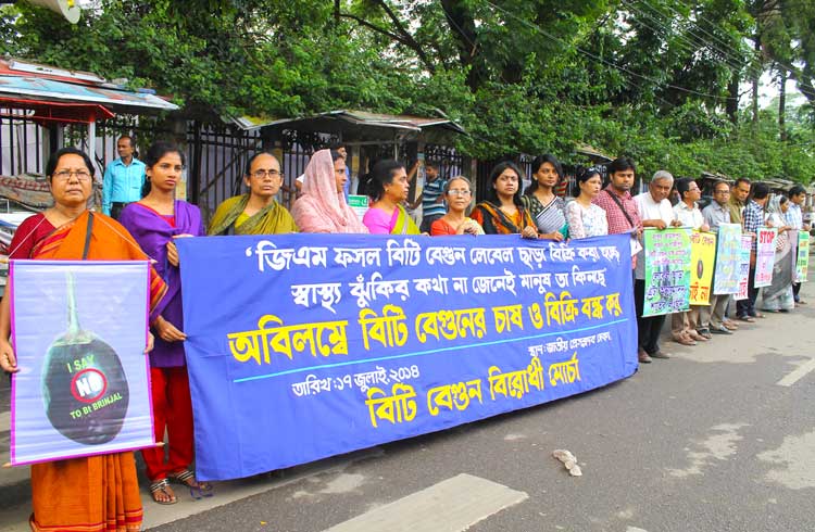 আমরা গভীর উদ্বেগের সাথে লক্ষ্য করছি বাংলাদেশে জিএম ফসলের প্রবর্তন করে এ দেশের কৃষি ও ভোক্তা হিশেবে জনগণকে ঝুঁকির মধ্যে ফেলে দেয়া হচ্ছে। বহুজাতিক কোম্পানির সহযোগিতায় জেনেটিক কারিগরির মাধ্যমে আমাদের অতি প্রিয় বেগুনের প্রাণ গঠনের পরিবর্তন করে বিটি বেগুন করা হচ্ছে। বাংলাদেশ কৃষি প্রধান দেশ এবং আমাদের সংখ্যাগরিষ্ট জনগোষ্টি কৃষির উপর নির্ভরশীল। একই সাথে এদেশ ফসলের দিক থেকে বৈচিত্র্যপূর্ণ। বাংলাদেশ কৃষি গবেষণা প্রতিষ্ঠানে যে বীজ সম্পদ আছে তা দিয়েই বোঝা যায়। এখানে সবজি, ডাল, তেলসহ জনগণের জন্যে প্রয়োজনীয় নানা ফসলের বীজ সংগ্রহ করা আছে। আমরা বিশ্বাস করি আমাদের দেশের কৃষকদের অভিজ্ঞতা ও জ্ঞান এবং আমাদের কৃষি বিজ্ঞানীদের দক্ষতা দেশের কৃষিখাতকে অনেক সমৃদ্ধ করতে পারে।