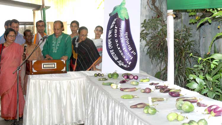 The event started with song and continued up to 8 pm in the evening . The visitors included men, women, students, journalists, teachers, consumers and children. The visitors came in a festive mood to see the demonstration of varieties of brinjal and listen to the songs mainly on brinjal. Varieties of recipes of brinjals were also prepared and put on display.